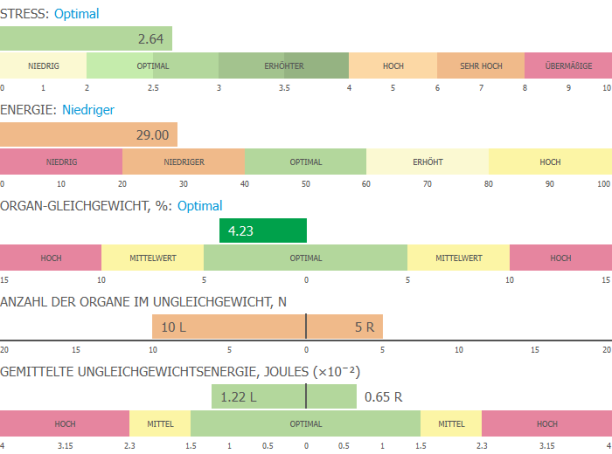 Damit können wir in Echtzeitmessung das aktuelle Stressniveua des Menschen ermittlen und können so zusammen therapeutischen Massnahmen erarbeiten, die das Stresslevel senken, und das Energielevel erhöhen können.